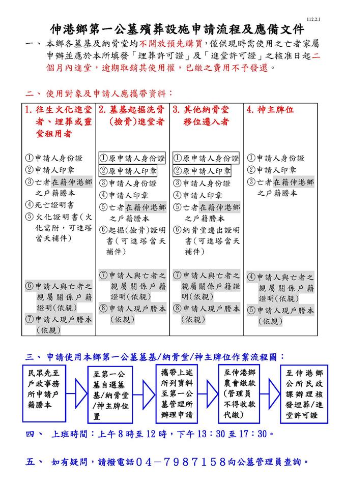 伸港鄉第一公墓殯葬設施申請流程及應備文件